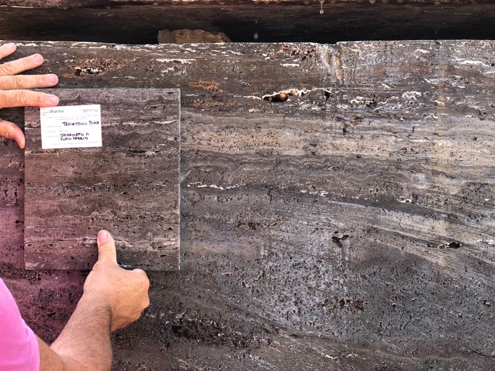 Da quelli selezionati nelle cave di marmo dell’Iran, come il travertino Black, particolare e scelto tra numerosi blocchi visonati e proposti, al Bianco di Carrara posato a pavimento o utilizzato nella realizzazione dei lavabi.