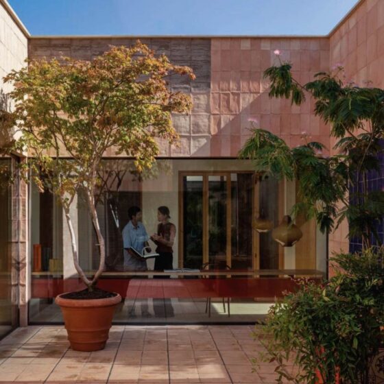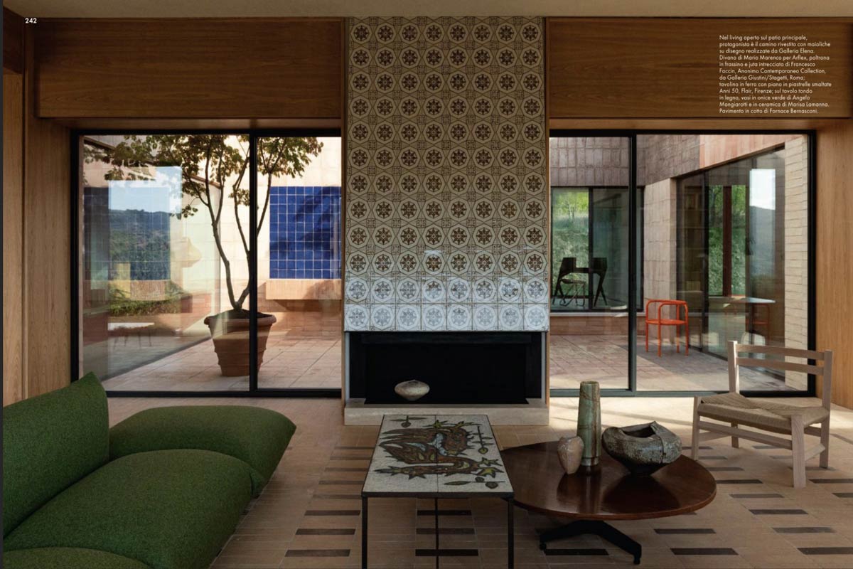Un materiale che ha il potere di scaldare di fatto l’ambiente, utilizzato in modo non convenzionale e non legato strettamente all’idea di uno stile rustico. Sono stati scelti mattoni di diversi formati e colorazioni, rettificati e poi levigati. All’interno la pavimentazione presenta particolari motivi che ricordano arazzi e tappeti; nel patio il cotto fatto a mano si rivela al meglio come rivestimento di tutte le superfici.