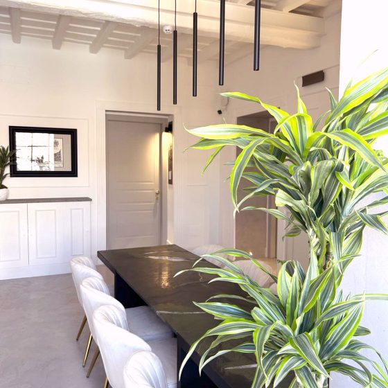 Tra sofisticati mobili artigianali italiani e camini in pietra originali, spiccano i tavoli custom-made concepiti appositamente per Palazzo Goldoni da Krei e Progetto Nudo.