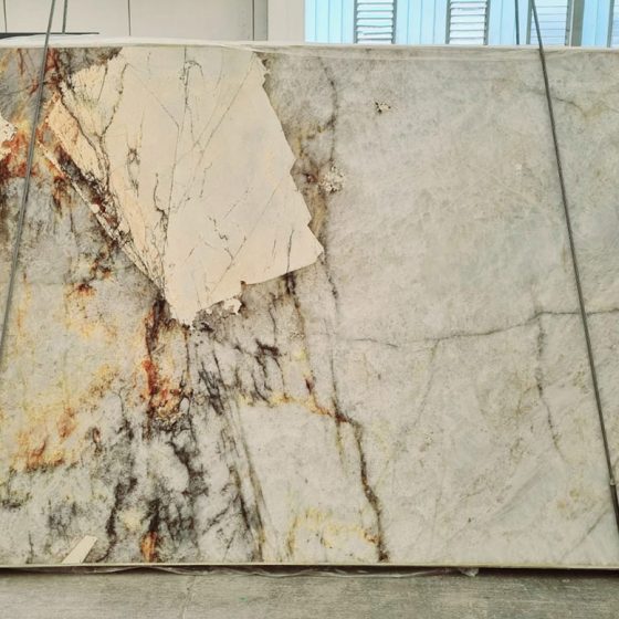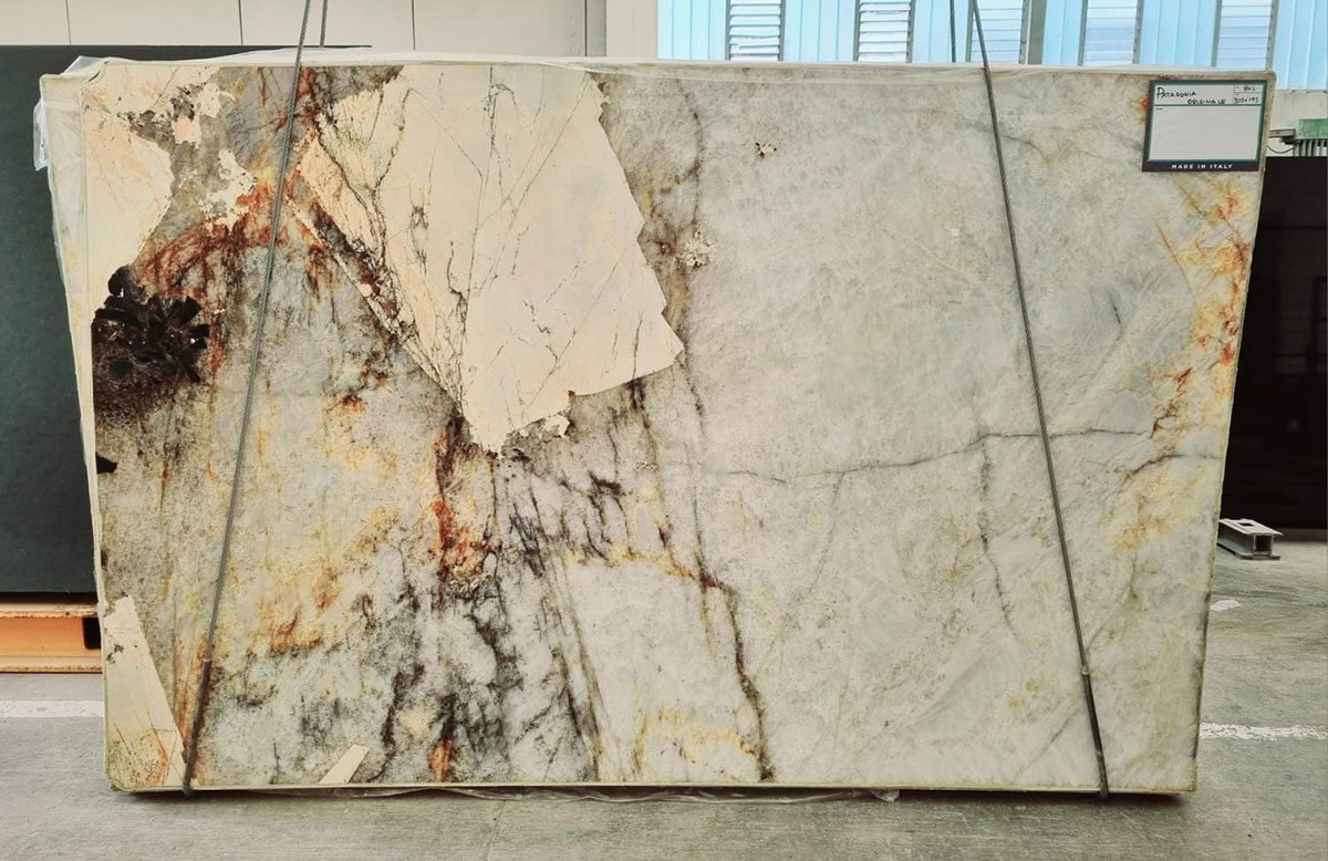 L’elemento spettacolare è regalato dalla quarzite verde Avocado, pietra naturale tra le più apprezzate in architettura per il suo carattere camaleontico. Si tratta di una roccia proveniente dal Brasile definita da ampie macchie di verde di tonalità diverse intervallate da sottili venature di quarzo bianco che creano una texture tridimensionale. Il verde intenso e profondo regala alle superfici effetti materici unici come di opere d’arte create dalla natura. Grazie alla sua incredibile durata e resistenza al calore, la quarzite si presta a personalizzare workspace, hotel, lounge, ristoranti, spa&wellness riportando il fascino della natura nell’interior design.