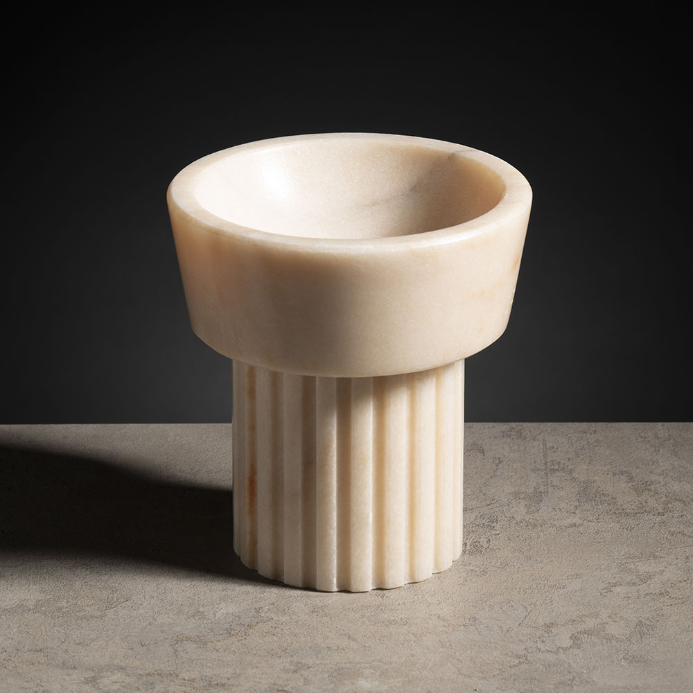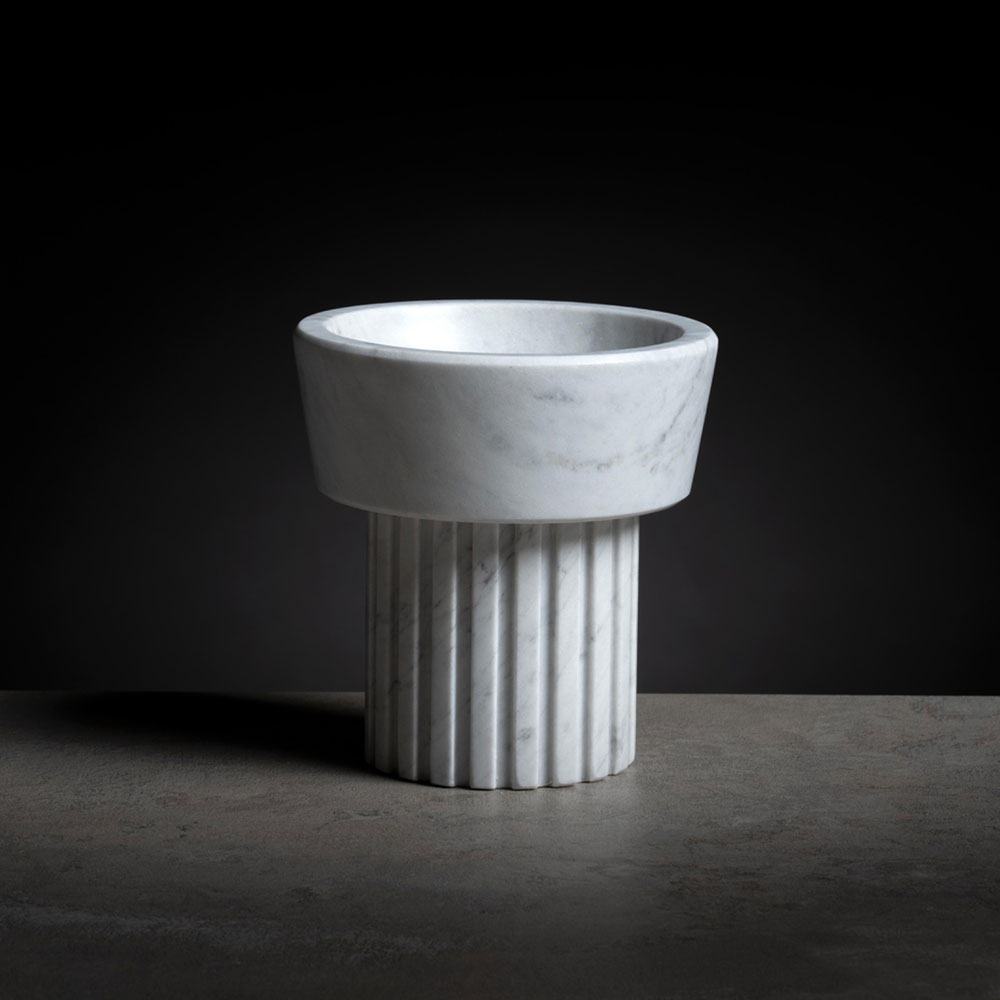 © Mauro BurchianiLa collezione Capitelli, design di Giulia Balducci, è composta da tre elementi scultorei realizzati in marmo massello che esibiscono particolari lavorazioni ispirate agli stili decorativi degli ordini architettonici classici, creando un elegante connubio tra l’antica architettura greca e la funzionalità moderna.