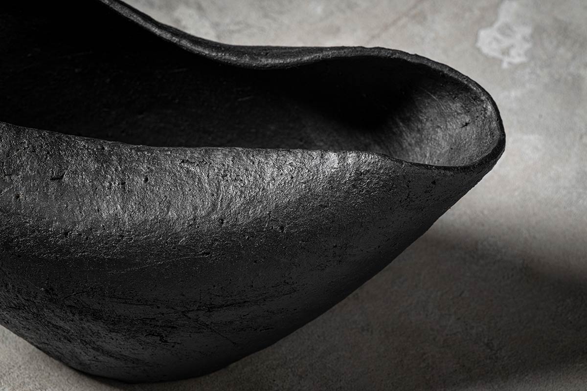 Il termine bucchero che deriva dal portoghese bucàro, terra odorosa, in Italia viene associato alle pregiate ceramiche riportate alla luce durante gli scavi effettuati nelle necropoli etrusche. Gli Etruschi infatti avrebbero fatto grande uso della tipica ceramica nera per produrre oggetti di uso quotidiano resi affascinanti dalla caratteristica superficie lucente, l’elegante forma e le lavorazioni preziose. La tecnica nera sul tipo del bucchero etrusco, è una tecnica magica che consiste nel cuocere oggetti in atmosfera riducente, ossia priva di ossigeno, processo che permette di ottenere pezzi di colorazione nera, che mostrano con forza l’essenza del processo ceramico.