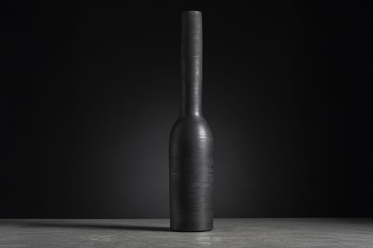 La bottiglia di design in bucchero, esibisce linee slanciate e forme sinuose, dove a prevalere sulla funzionalità è di certo l’estetica pura perché alle volte stupisce avere sulla tavola un oggetto che attira gli sguardi e stimola la curiosità. Una visione anticonformista, frutto di sperimentazione, dove la materia è protagonista in tutta la sua forza decorativa.