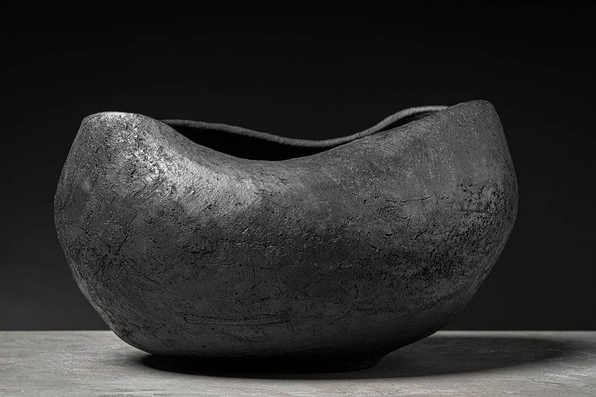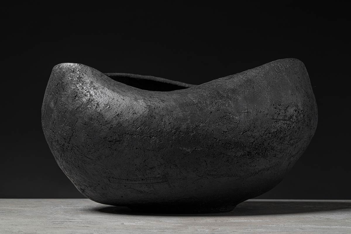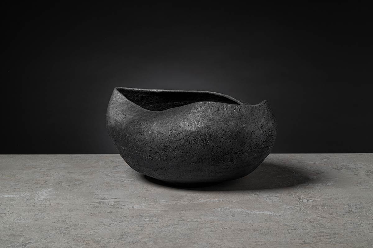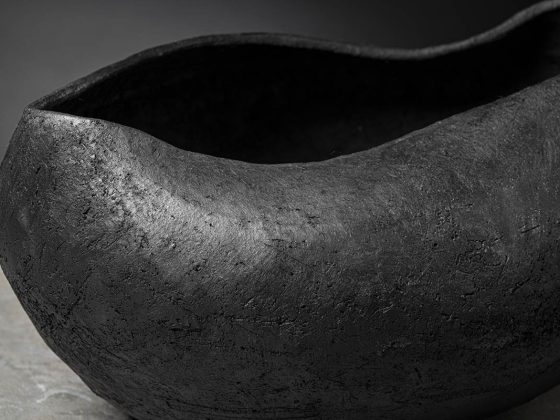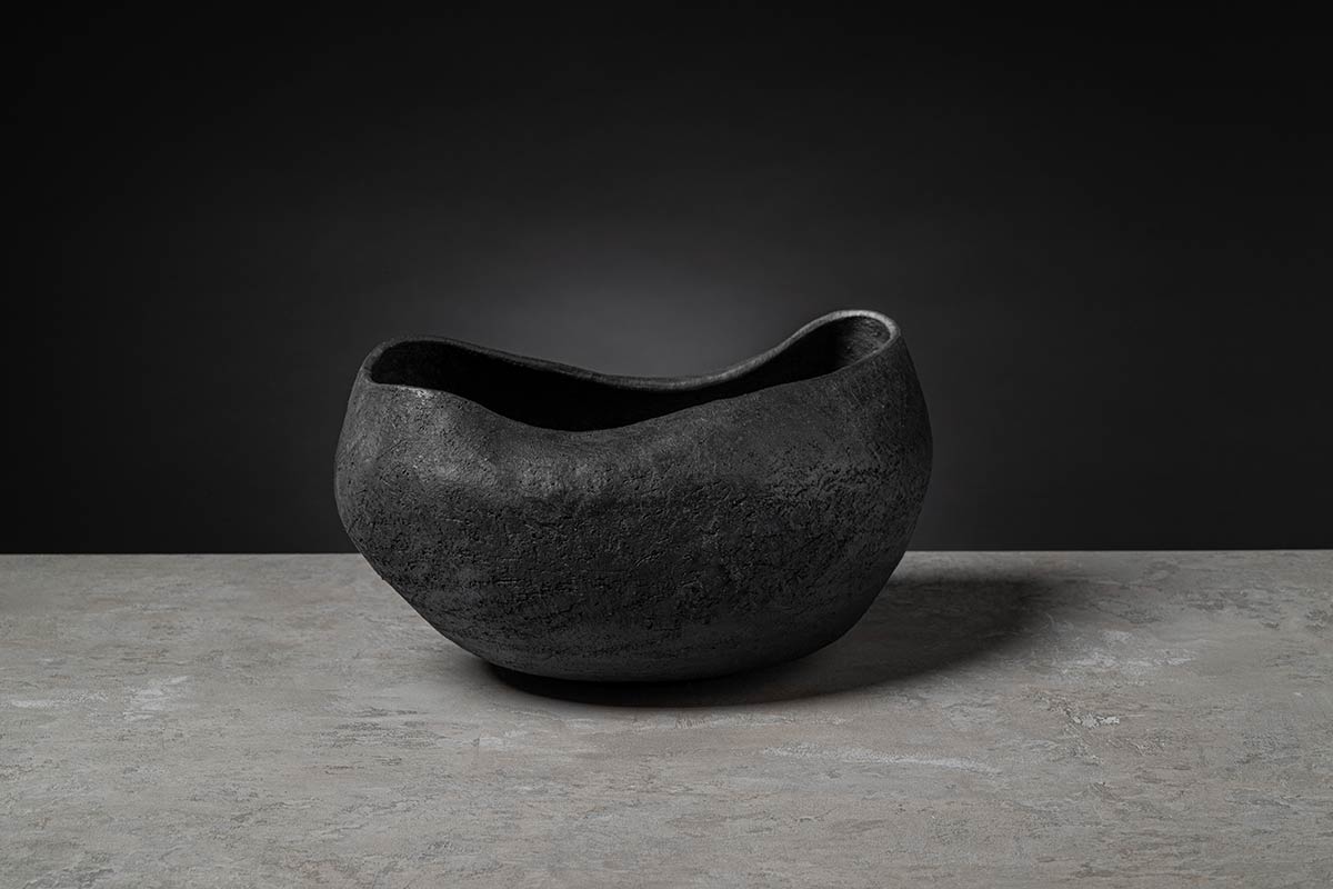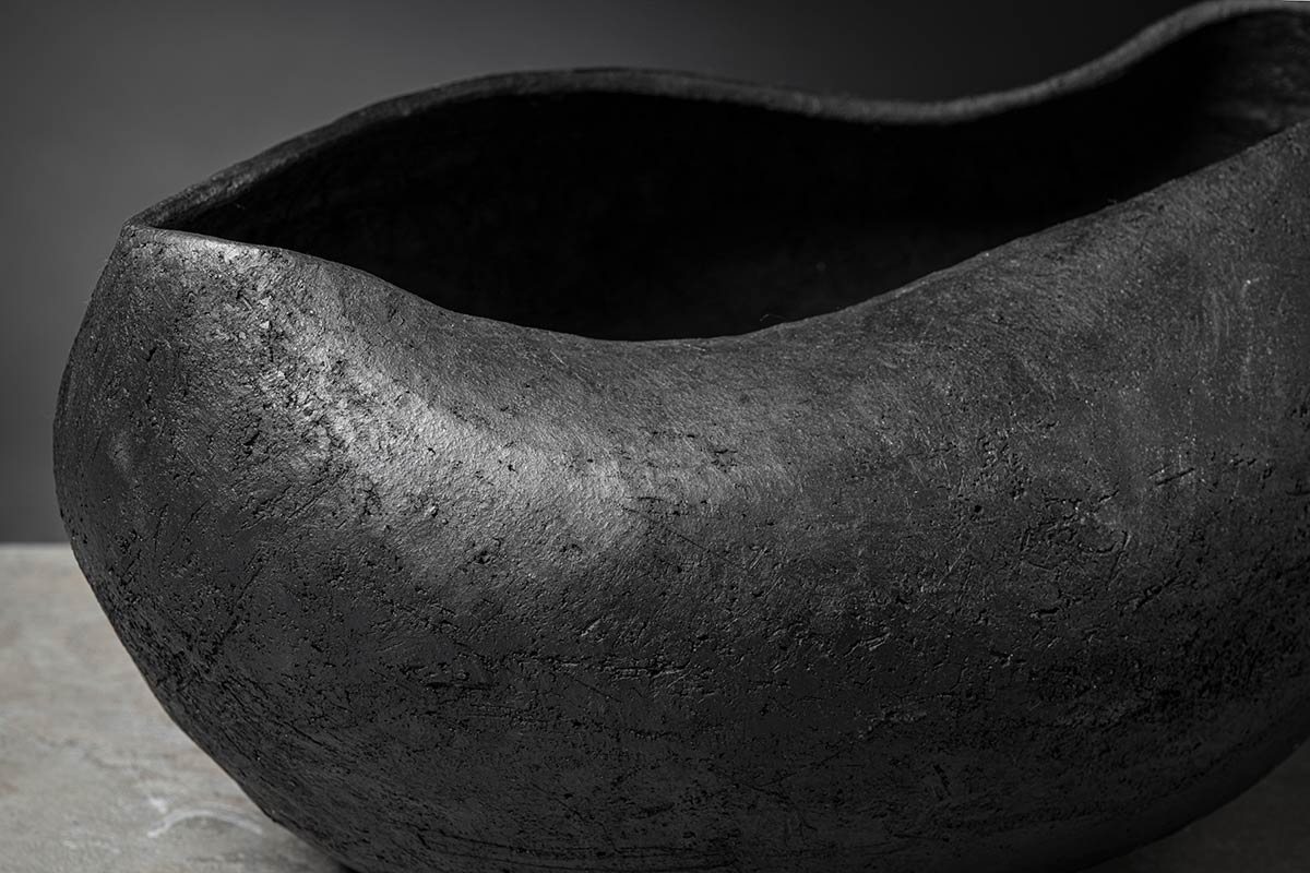 Come un guscio di noce custodisce il suo prezioso frutto, il nuovo complemento si fa scrigno di un tesoro ancestrale come l’antica arte del bucchero. La superficie modellata dal gesto sapiente degli artigiani rivela il fascino contemporaneo di un materiale antico tornato a conquistare l’interior design.