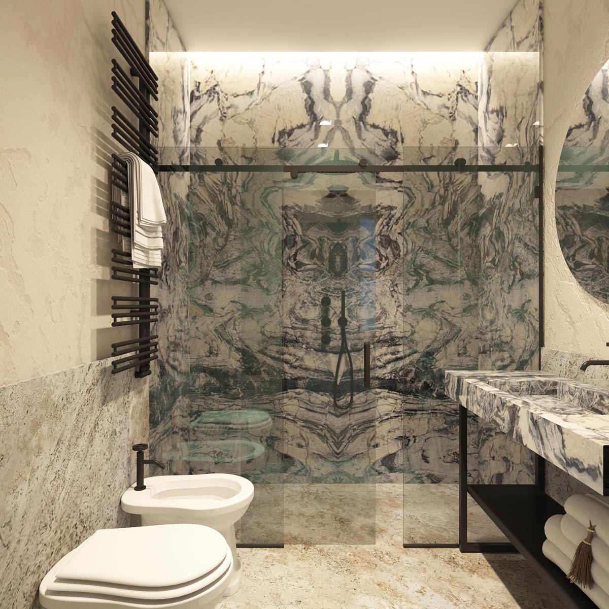 Come partner di un nuovo progetto di architettura, Krei in collaborazione con l’architetto Carlo Magoni, ha selezionato il marmo Ilago, di concerto con il committente per una residenza romana esclusiva dove sarà utilizzato per realizzare una grande doccia ed un lavabo realizzato su misura, abbinato ad un rivestimento, anche per la pavimentazione, in travertino classico romano.