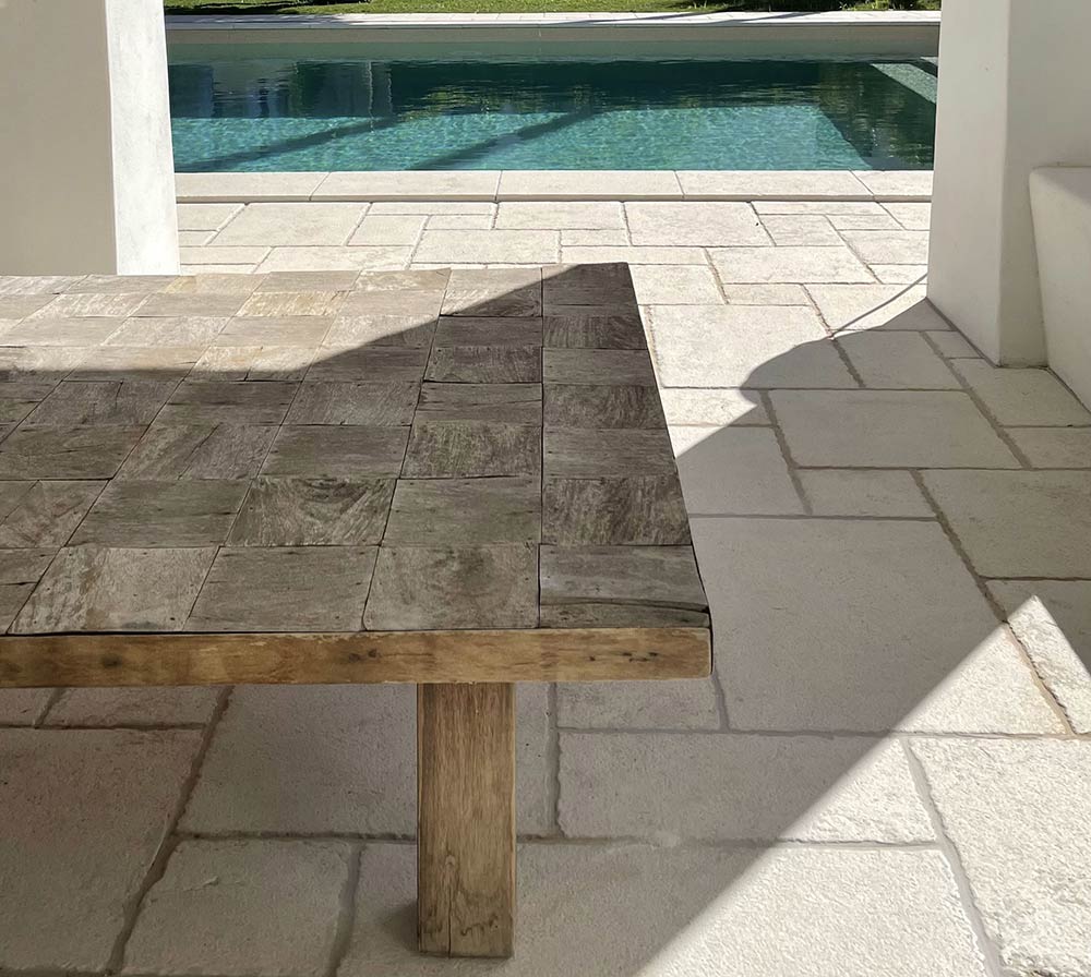 È una delle pietre più versatili, caratteristica per le sue variazioni di colore che dal bianco avorio virano al giallo terra. La sua resistenza all’usura e l’estrema durevolezza ne fanno uno dei materiali privilegiati per pavimentazioni da esterno dall’elevato impatto estetico, come nel nostro progetto per Can Azul.
