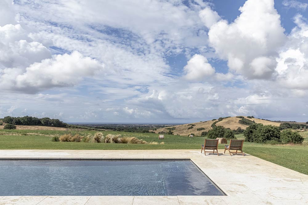 La scelta del Travertino quale rivestimento della piscina esterna è in armonia con il contesto naturale che la accoglie. L’acqua si trasforma in elemento di design per momenti di relax e benessere, uno spazio bello da vivere e da vedere in interazione con il paesaggio, offrendosi quale rifugio prezioso.
