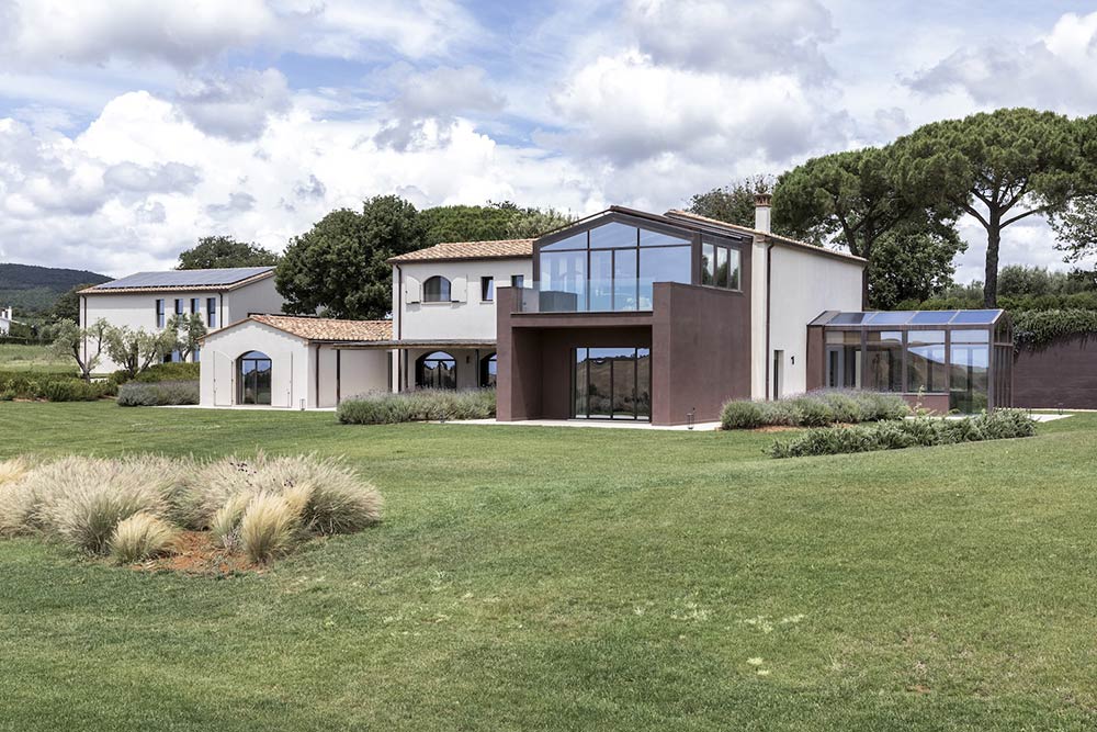 In questo paesaggio d’eccezione, la natura diventa cornice e protagonista di un’architettura che dialoga con il territorio. Tra macchia mediterranea, vigneti e cipressi secolari, sorgono dimore dal fascino rustico che, grazie a un attento restauro, ritrovano nuova vita. Pietra, marmo e granito – materiali radicati nella tradizione – vengono reinterpretati con sensibilità contemporanea, dando forma a spazi che coniugano memoria e innovazione.